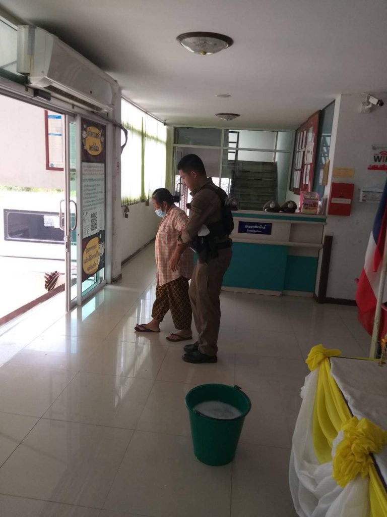 ชาวบ้าน เดินทางมาติดต่อราชการ เดินขึ้น-ลง บันไดไม่ไหว ทางเจ้าหน้าที่ตำรวจ เห็นจึงเดินมาประคอง ช่วยคุณยาย เดินลงบันได