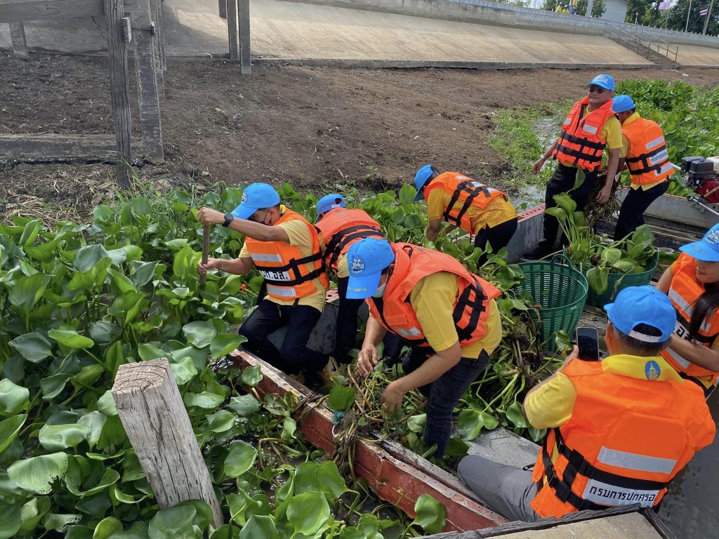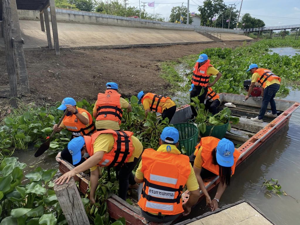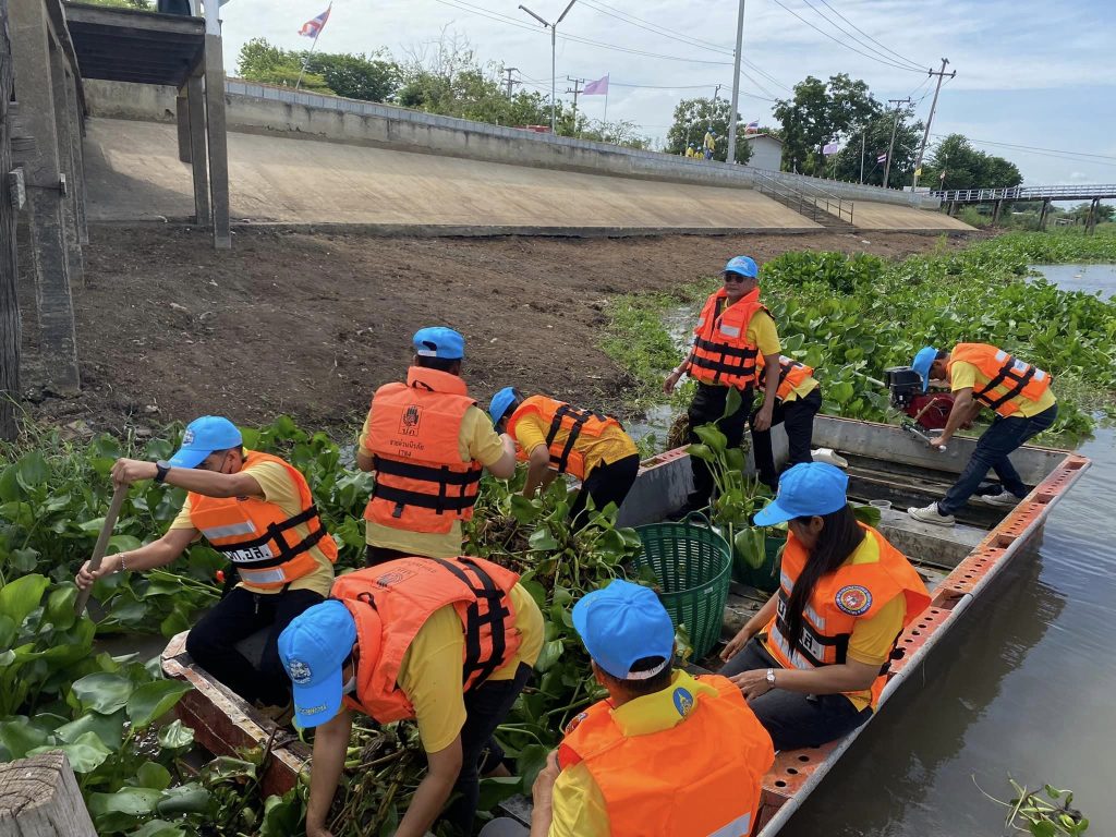 ร่วมกับส่วนราชการต่างๆ ของอำเภอบางซ้าย ทำกิจกรรมจิตอาสาลงเรือเก็บผักตบชวา-วัชพืชและขยะในลำคลอง เจ้าเจ็ด-บางยี่หน