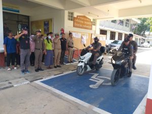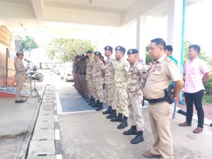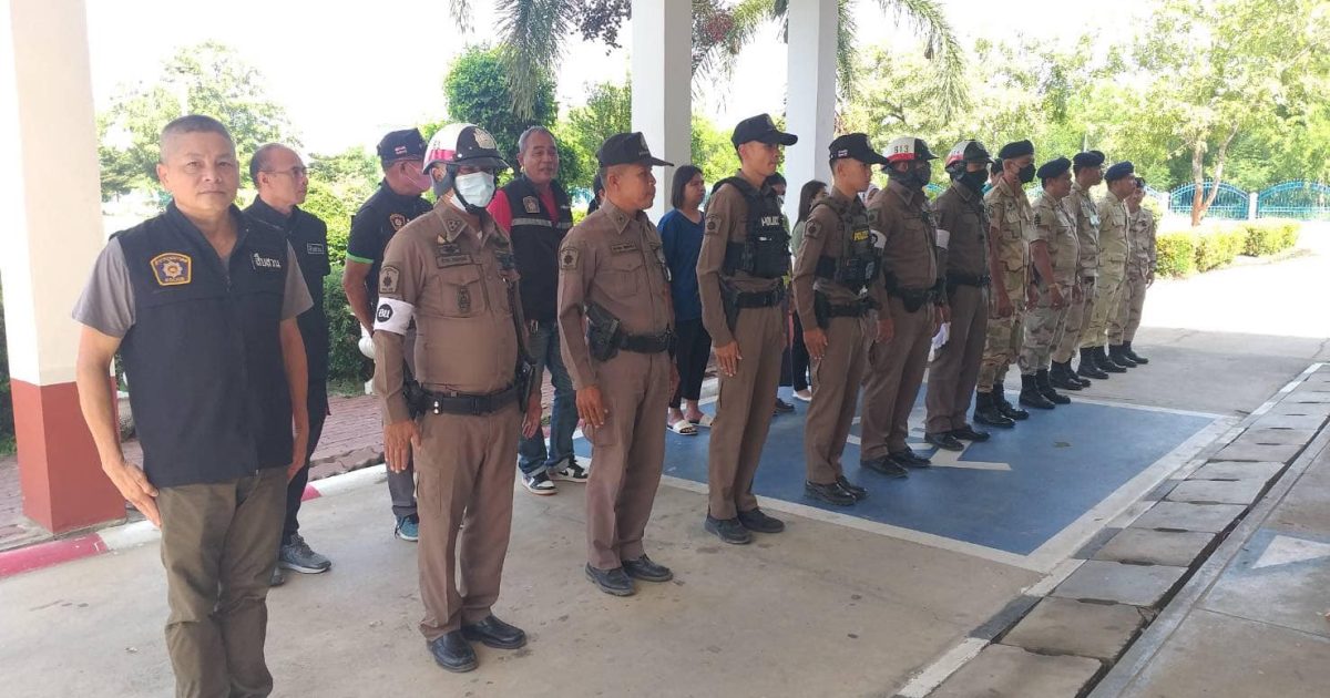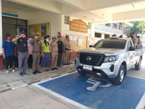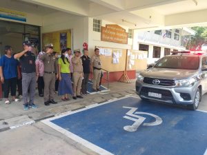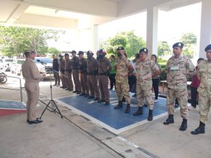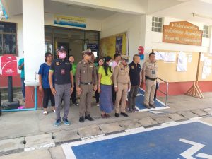 พ.ต.ท.ชนะ ธีรศรัณยานนท์ , พ.ต.ท.รุ่งเรือง แสนโครต , พ.ต.ต.ธีระวุทธิ์ หล้าทุม พร้อมกำลังเจ้าหน้าตำรวจ สภ.บางซ้าย ร่วมปล่อยแถวระดมกวาดล้าง ผู้มีอิทธิพล และอาชญากรรม หน้าที่ว่าการอำเภอบางซ้าย