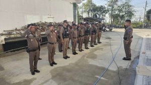 พ.ต.ท.จิรพัฒน์ ศรีเดช รอง ผกก.ป.สภ.บางซ้ายข้าราชการตำรวจสภ.บางซ้าย ร่วมเข้าแถวเคารพธงชาติ สวดมนต์ ท่องอุดมคติ ตรวจระเบียบ เครื่องแต่งกายและฝึกทบทวนยุทธวิธี CQB