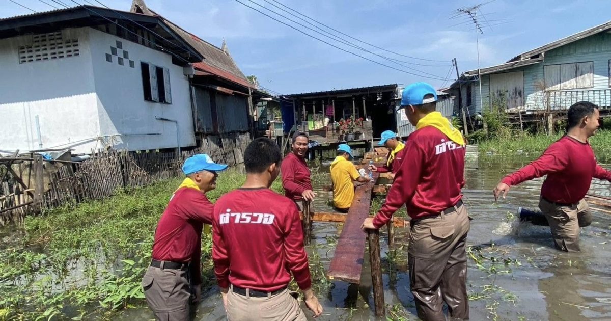 นายรชต ศรีชื่น นายกองค์การบริหารส่วนตำบลปลายกลัด พร้อมด้วยข้าราชการตำรวจชุดจิตอาสาภัยพิบัติช่วยเหลือผู้ประสบอุทกภัยได้ช่วยทำสะพานแก่ผู้ประสบอุทกภัย ณ หมู่ 1 ต.ปลายกลัด อ.บางซ้าย จ.พระนครศรีอยุธยา