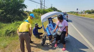 พ.ต.ท.ธีระวุทธิ์ หล้าทุม สวป. พร้อม ตร.จิตอาสา โครงการจิตอาสาพระราชทานได้ช่วยเหลือประชาชน รถ 3 ล้อ ว.18 บริเวณ ถ. อย 3263 ได้ประสาน ให้ช่างมาซ่อมเรียบร้อย