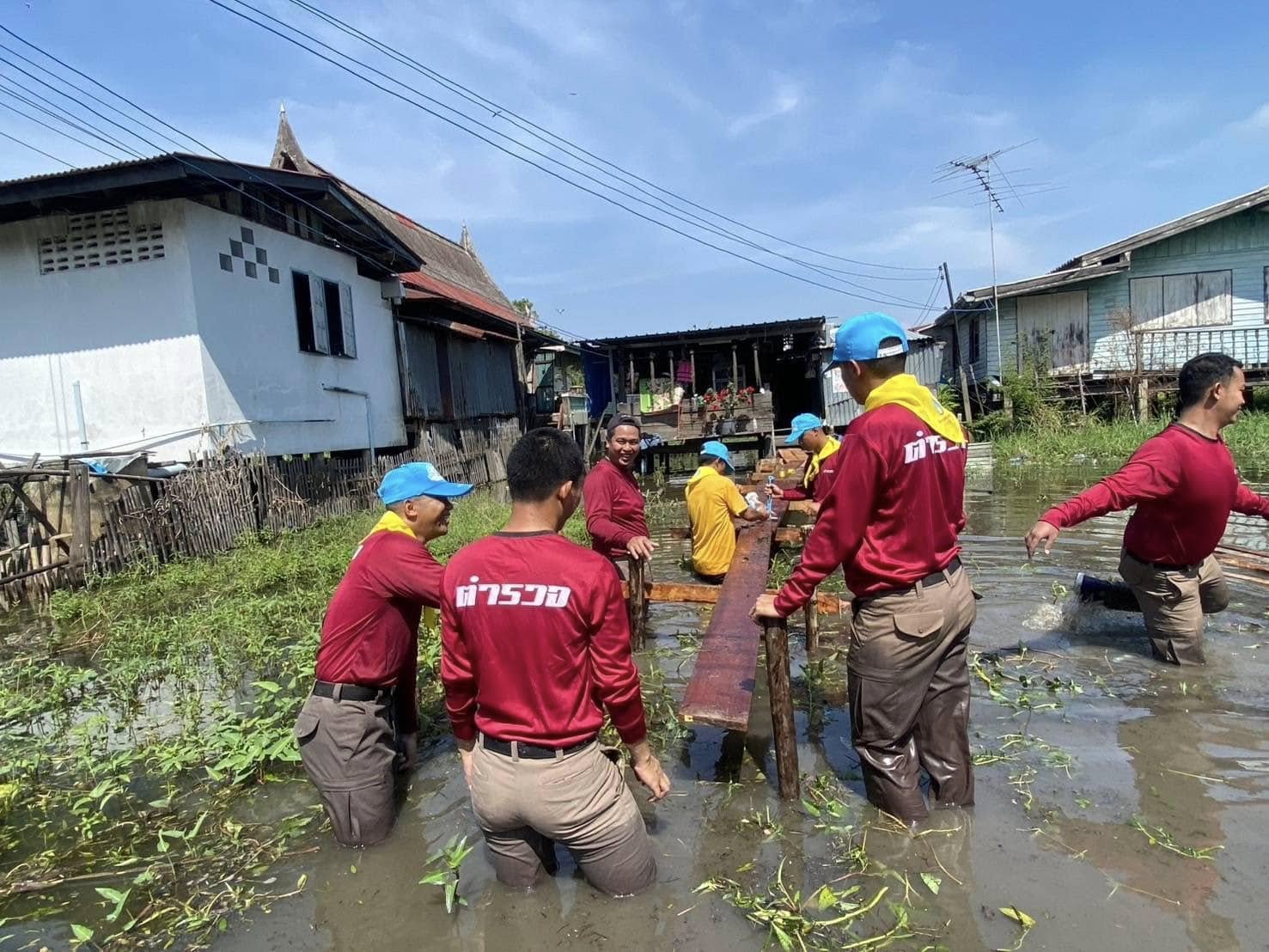 ตำรวจบางซ้ายจิตอาสาภัยพิบัติ ช่วยสร้างสะพาน ให้แก่ผู้ประสบอุทกภัย วันที่ 17 ต.ค.66 เวลา 09.30 น. นาย