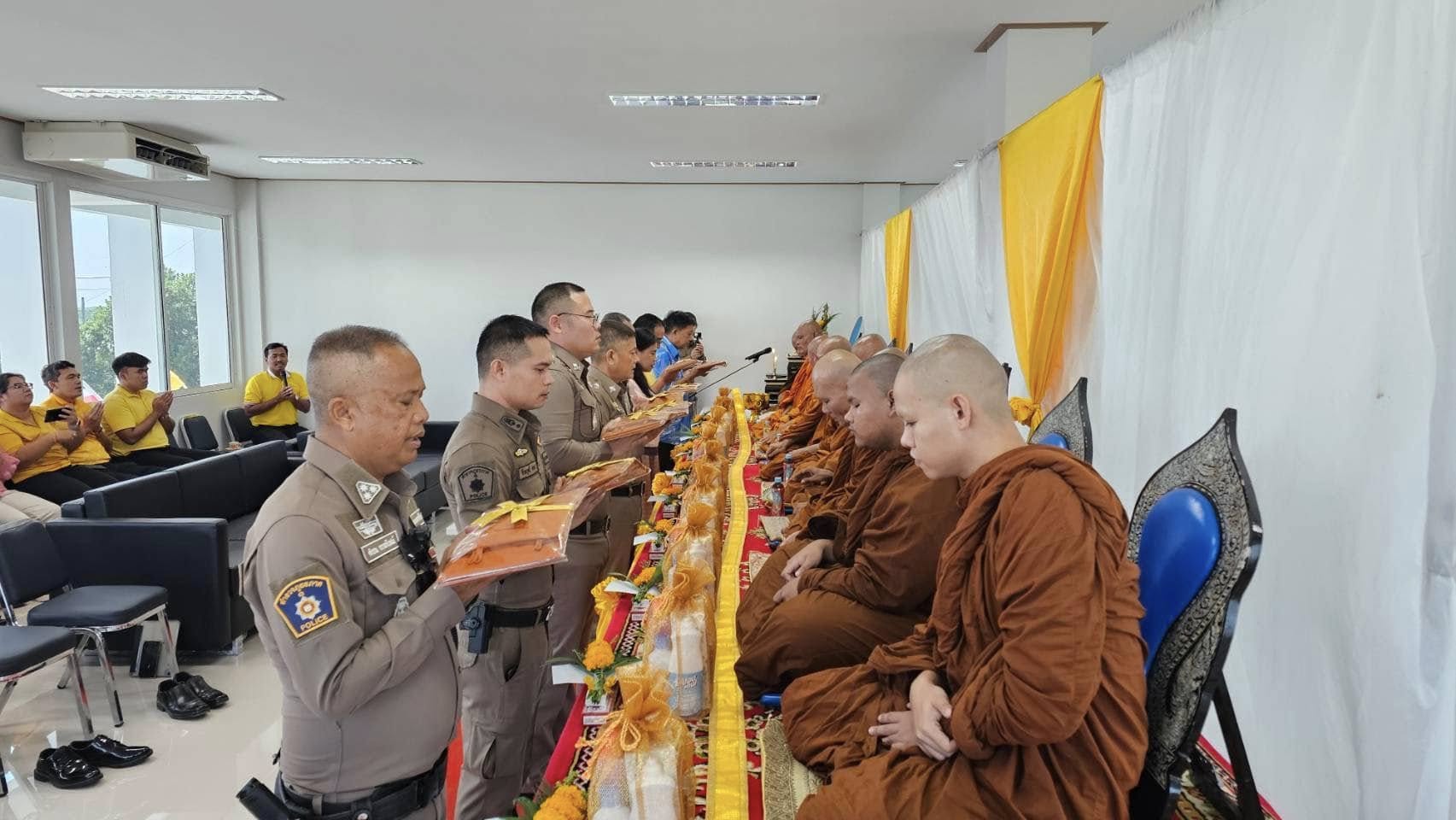 สภ.บางซ้ายจัดพิธีทำบุญถวายสังฆทานถวายภัตตาหารเพลแด่พระภิกษุสงฆ์ กิจกรรมเนื่องในวันตำรวจแห่งชาติ  วั