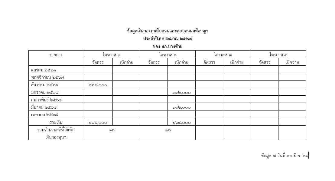 O13 : ข้อมูลเงินกองทุนเพื่อการสืบสวนสอบสวนการป้องกันและปราบปรามการกระทำผิดในคดีอาญา